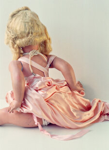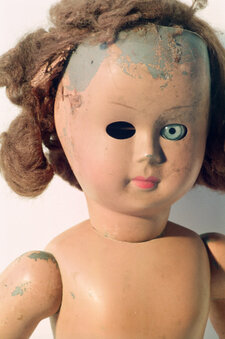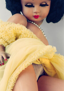 Die Künstlerin Theres Cassini widmet sich diesen Doppelbödigkeiten in ihren fotografischen Inszenierungen, die bereits 1998 entstanden. Ihre Arbeiten entkleiden die Bettpuppe und machen Brüche sichtbar: Schönheit und Verfall, Erotik und Gewalt rücken irritierend nahe zusammen. Das Unheimliche im scheinbar Harmlosen. Oft wurden diese Puppen frischvermählten Paaren geschenkt, mitgebracht vom Italienurlaub. Beim täglichen Bettenmachen erklang ein langgezogenes „Mama“ aus dem Bauch der Puppe, hervorgerufen durch einen eingebauten Sprechmechanismus. Ein Signal, direkt in das Unbewusste junger Frauen gesendet.